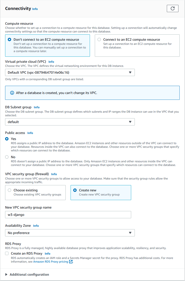 Give the securtity group a name, we will call it "w3-django":